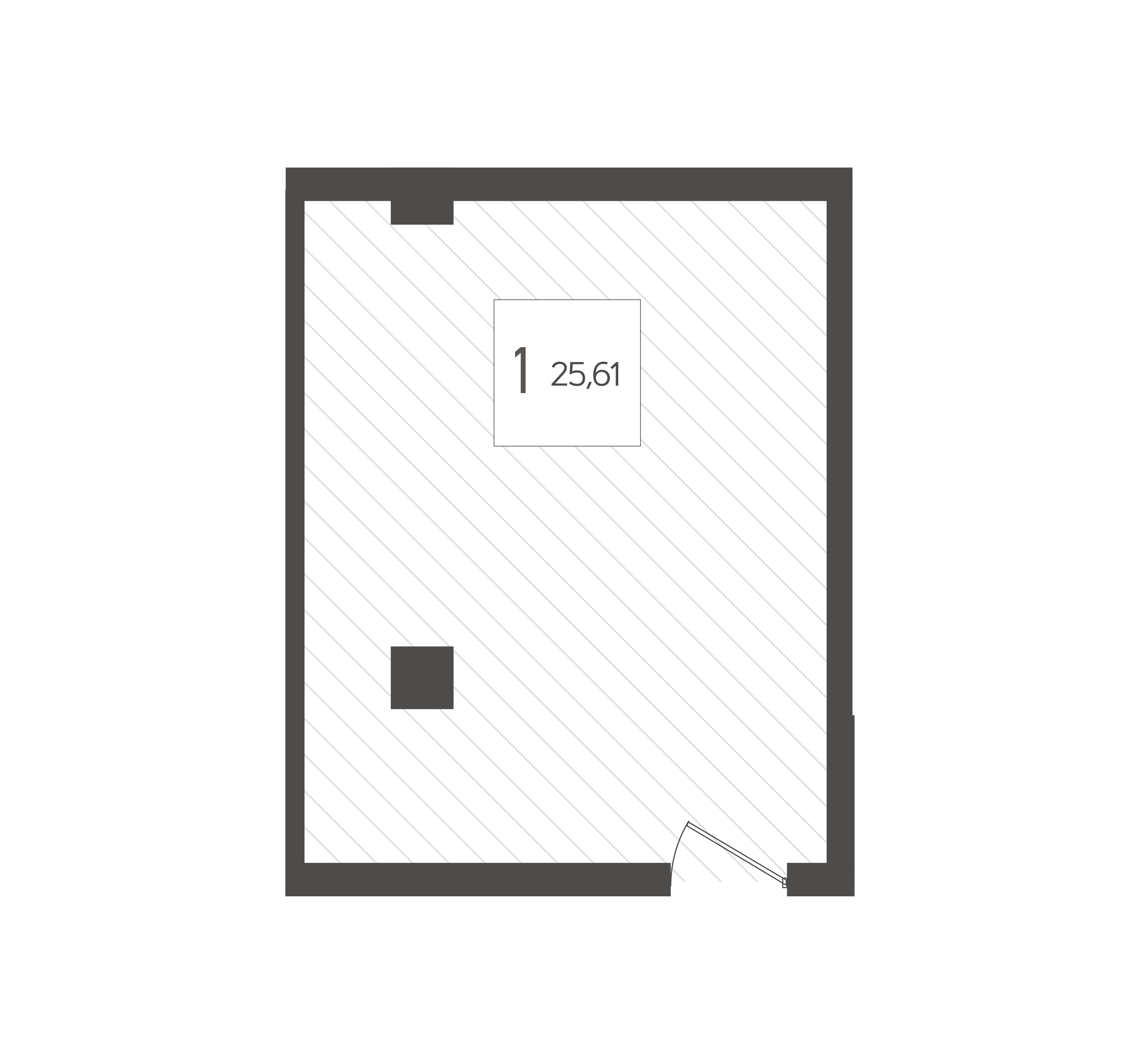 - Общая площадь 25.61 м²
