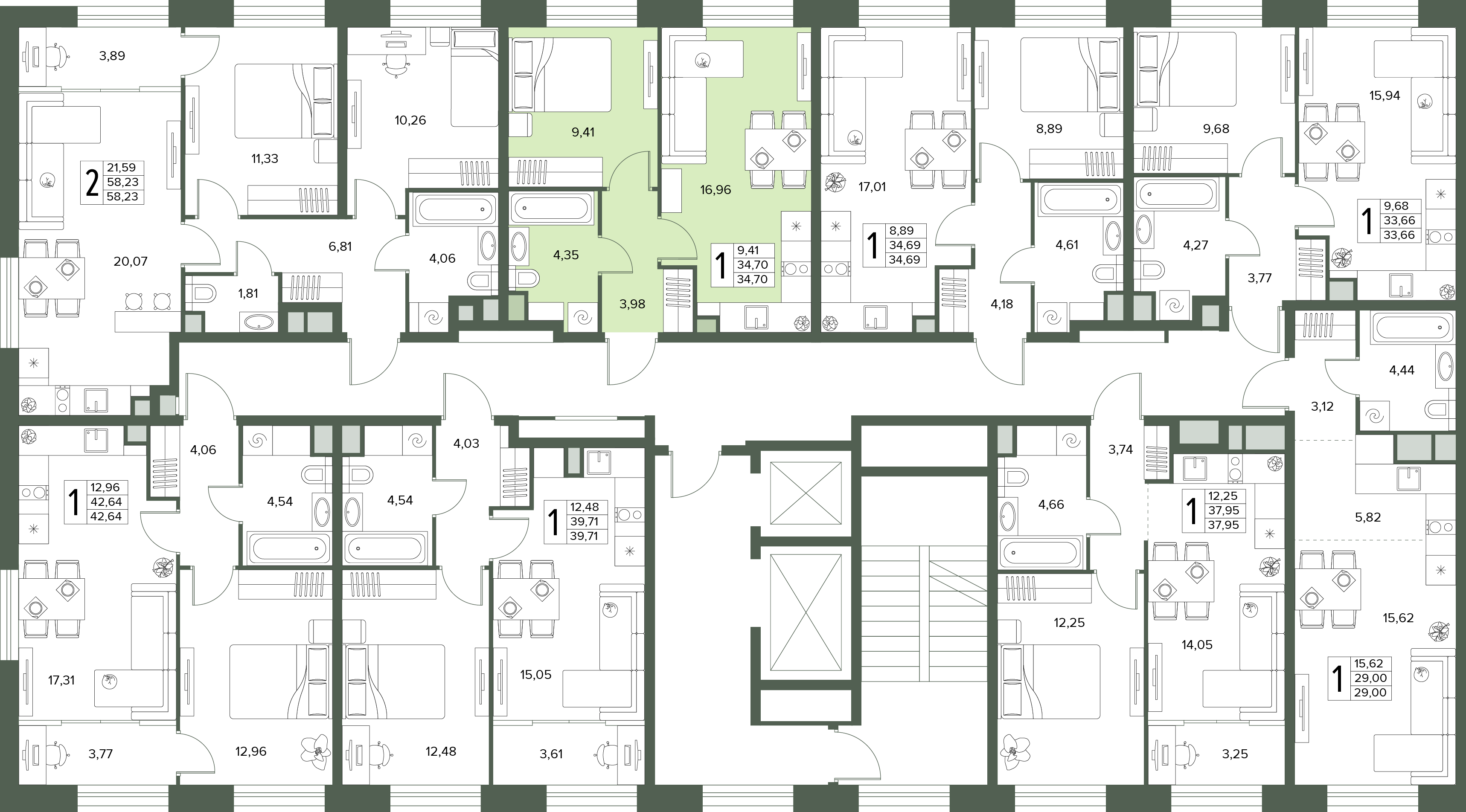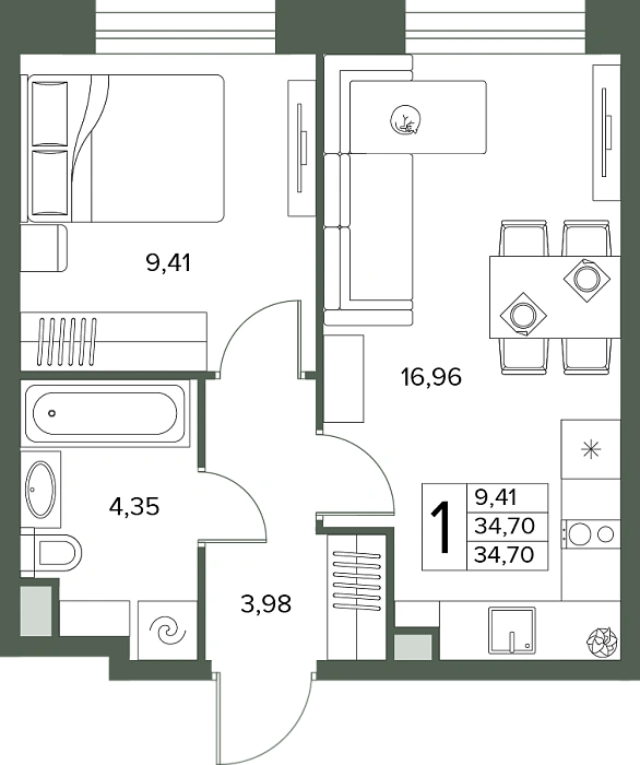 1-комнатная квартира №4, 34.7 м²