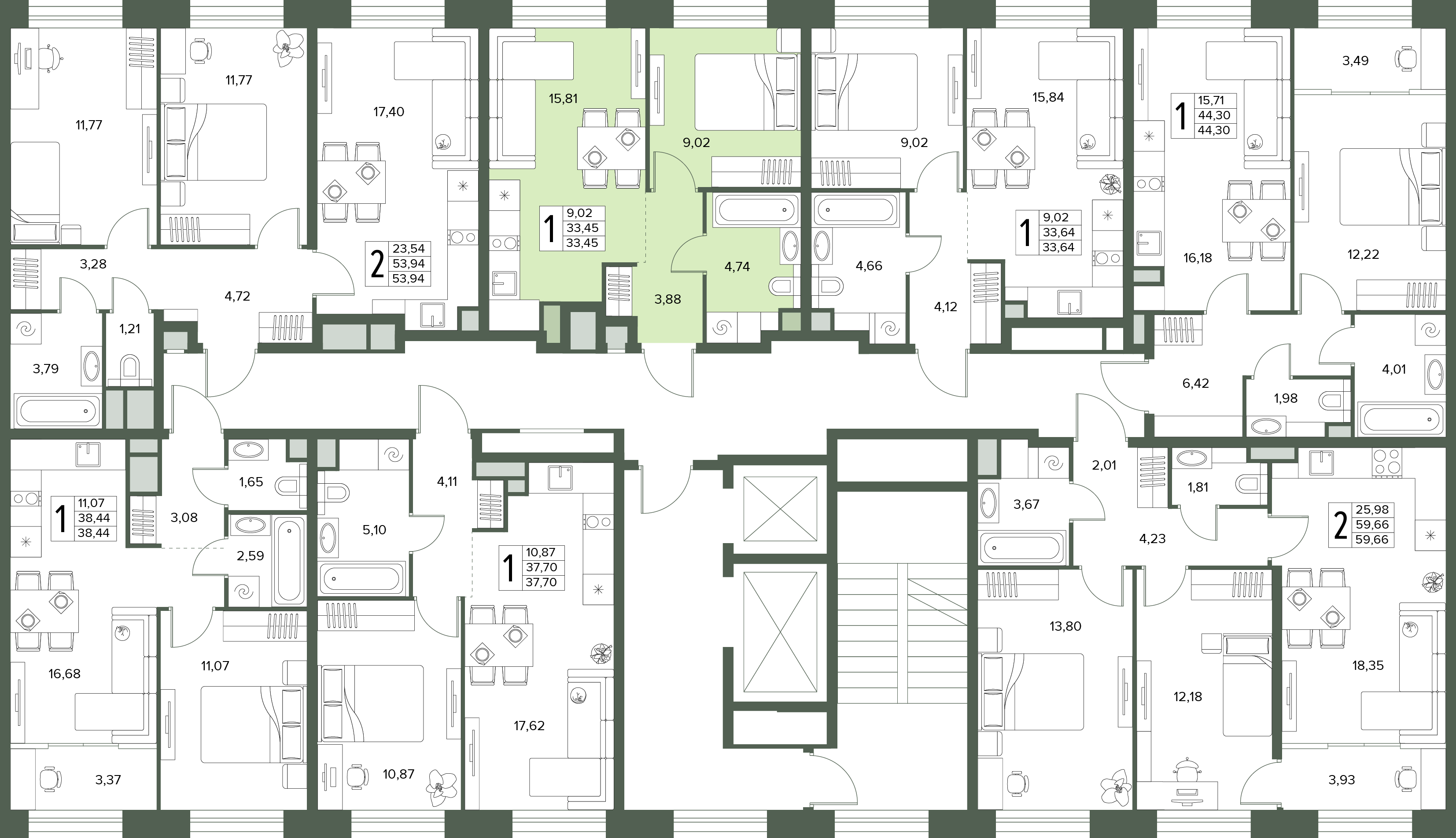 1-комнатная квартира №124, 33.45 м²