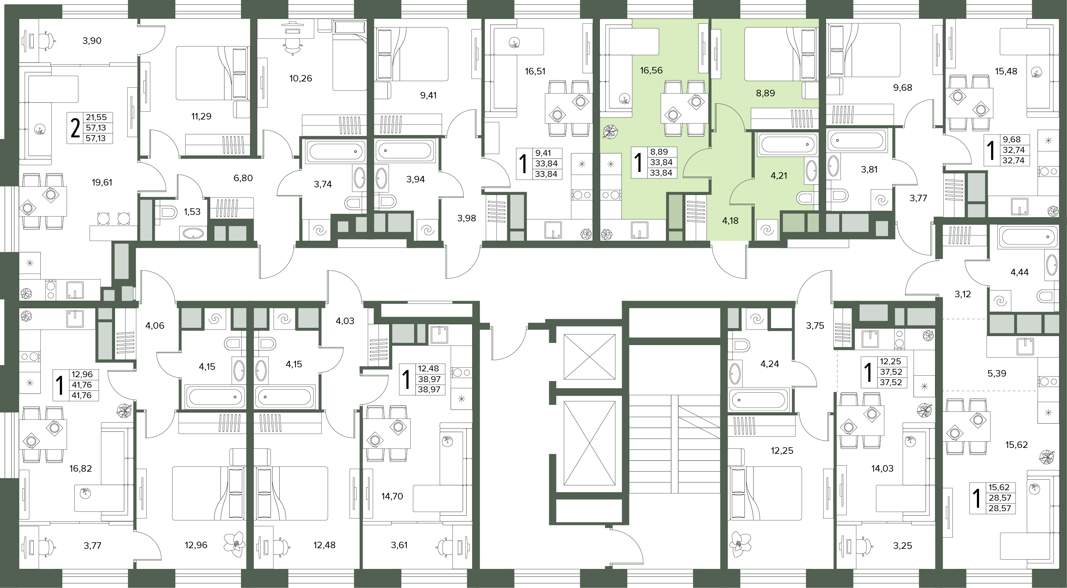 1-комнатная квартира №37, 33.84 м²