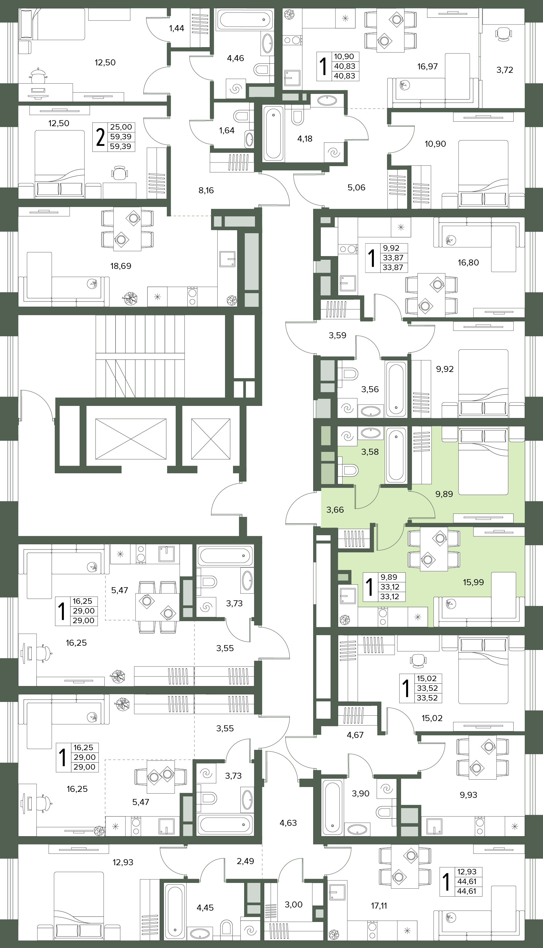1-комнатная квартира №173, 33.12 м²
