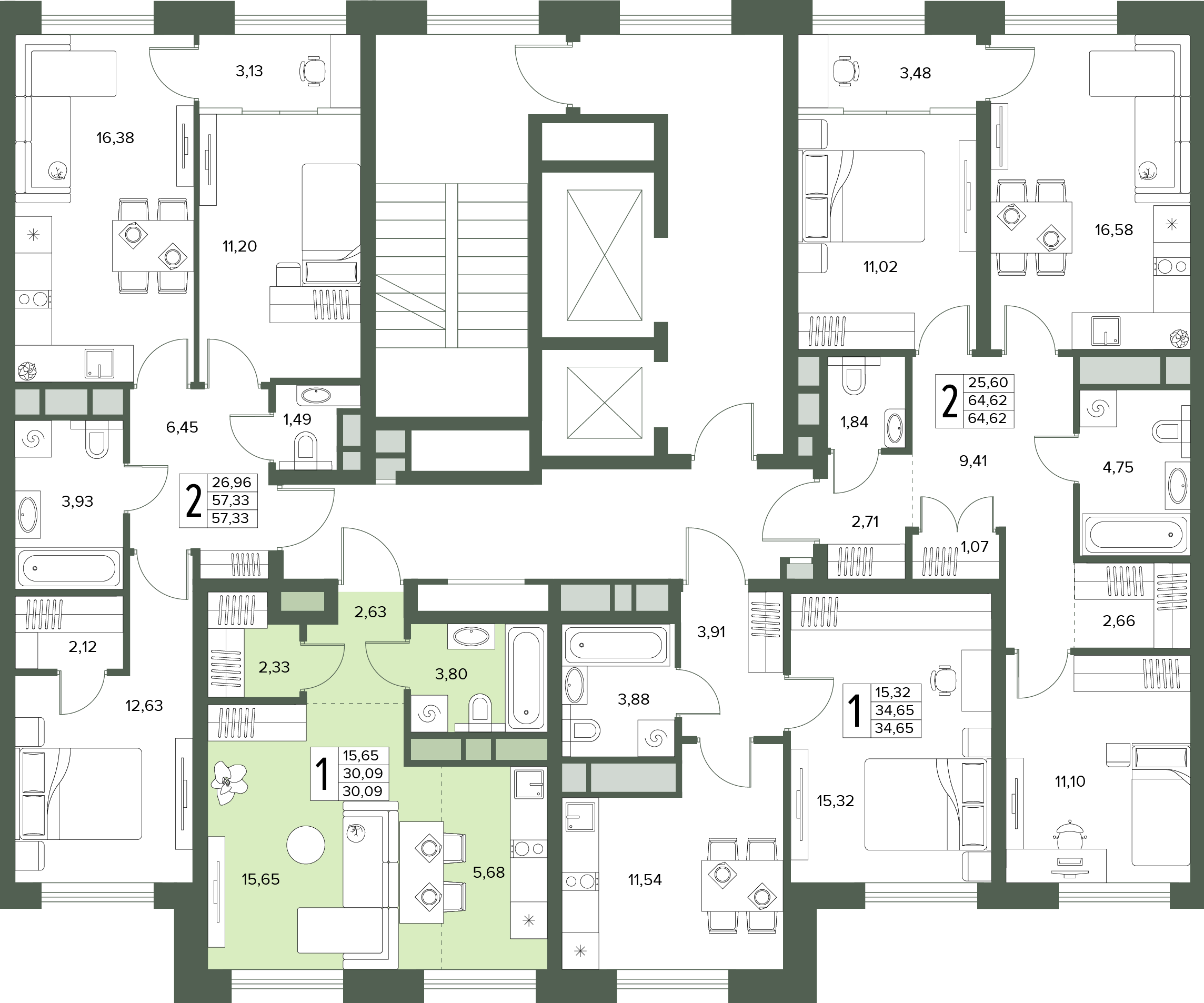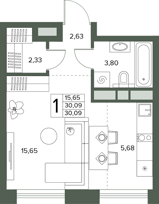 - Студия №63, 30.09 м²