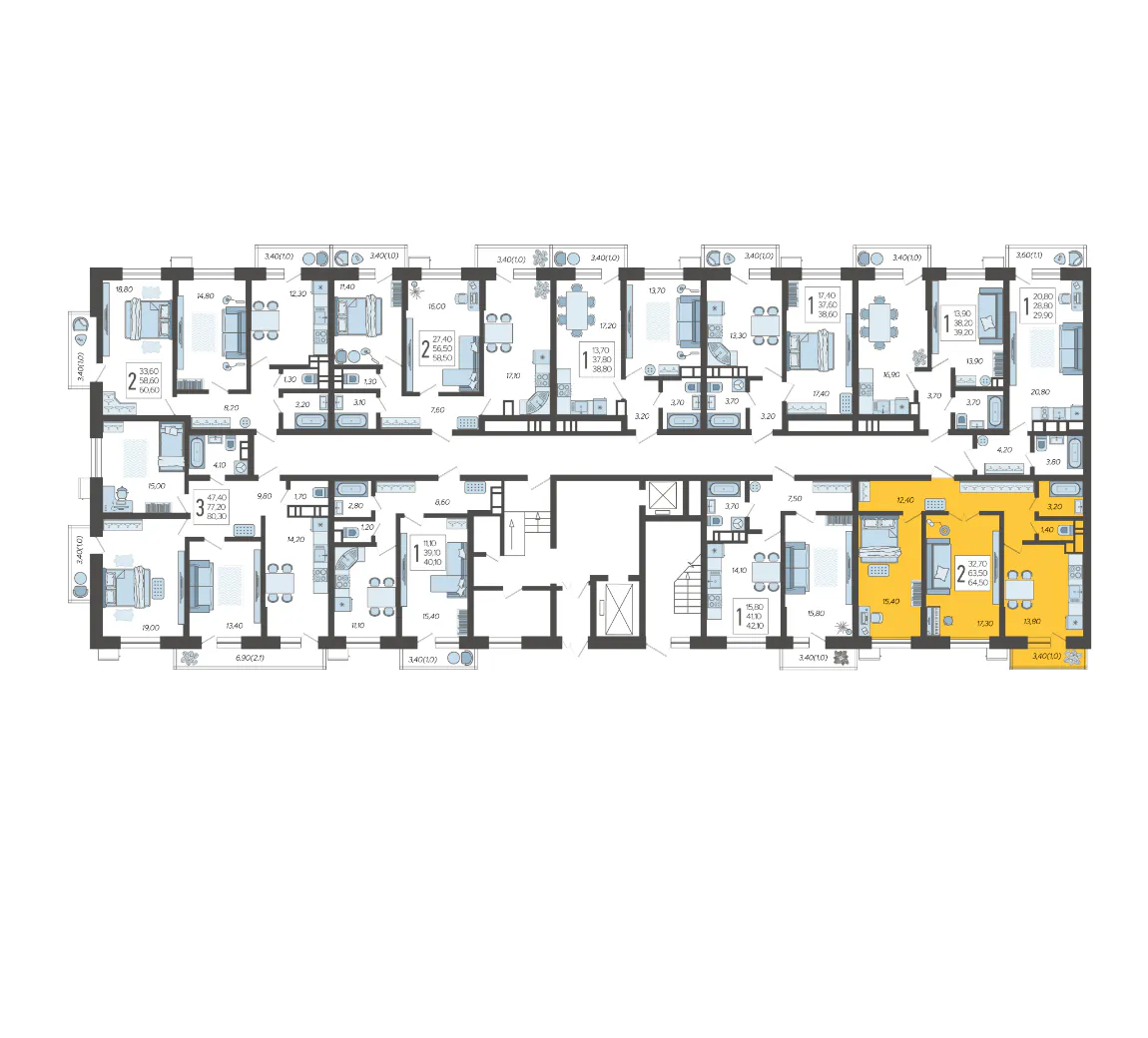 2-комнатная квартира №9, 64.5 м²