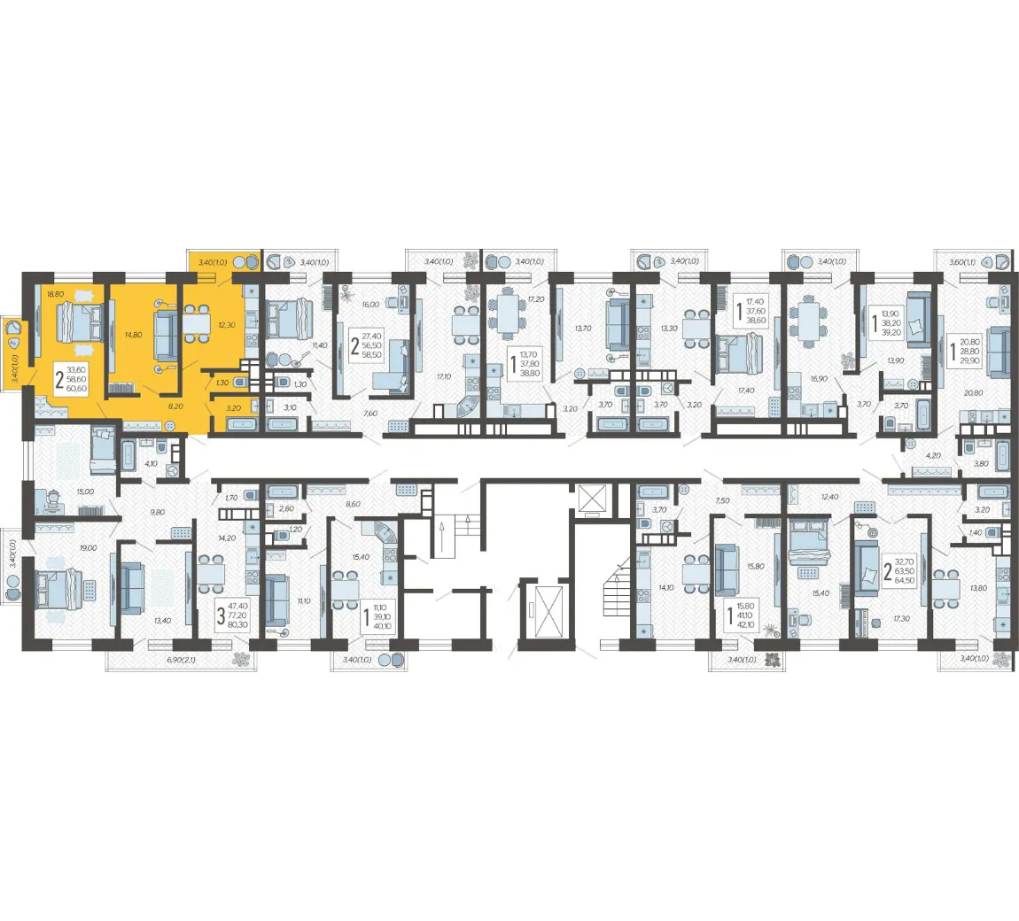 2-комнатная квартира №3, 60.6 м²