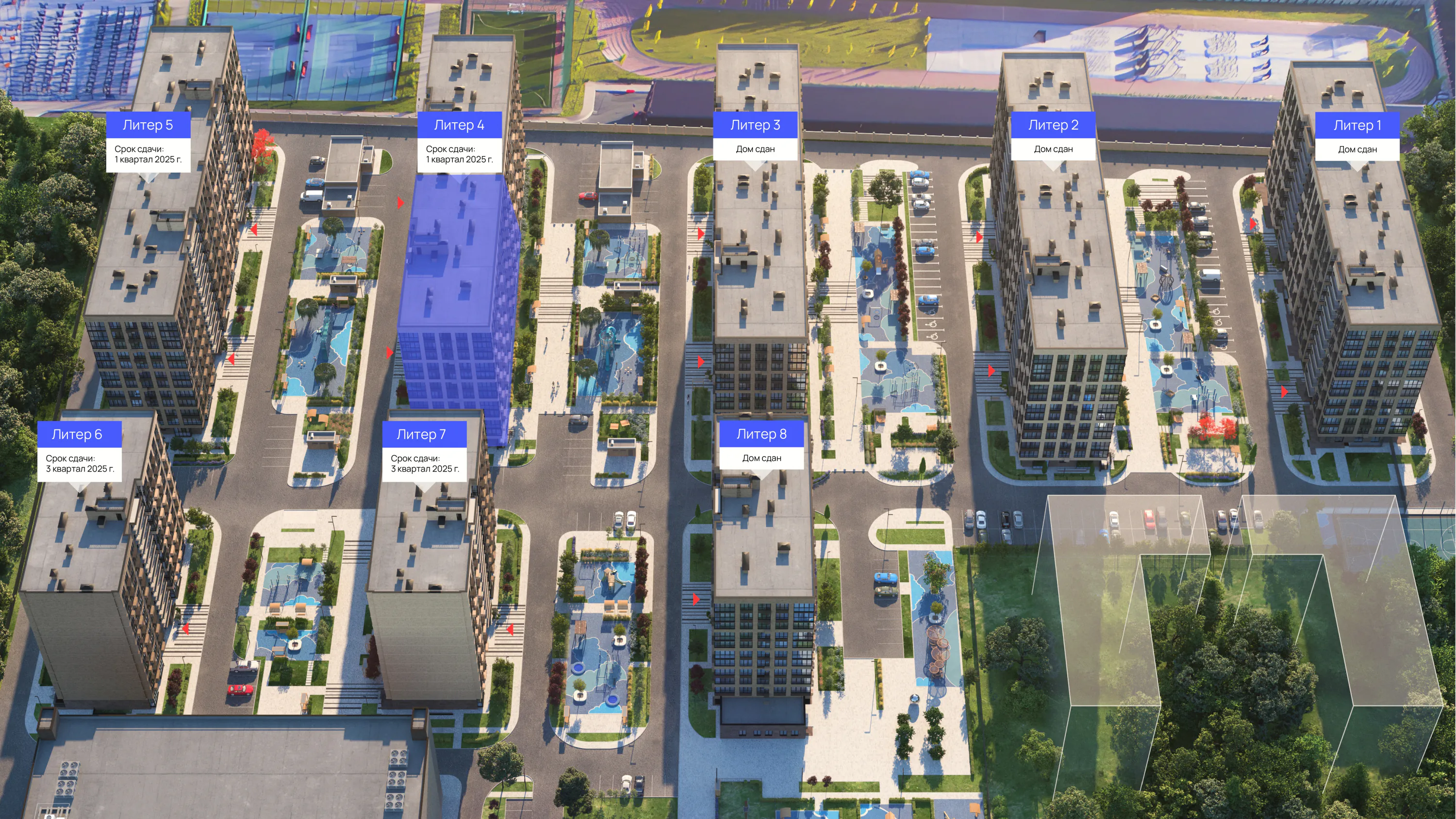 Окрестности комплекса – спокойный тихий район утопающий в зелени, со спокойным ритмом жизни без излишней суеты мегаполиса.