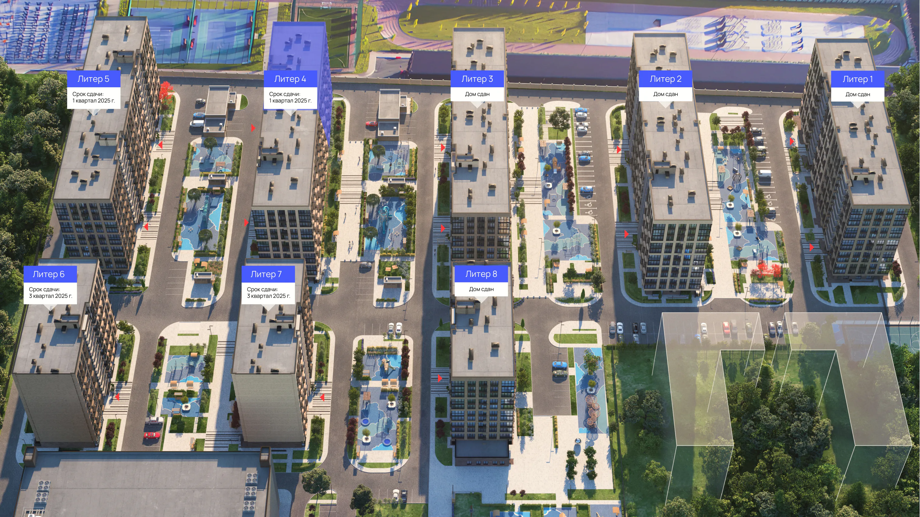 Окрестности комплекса – спокойный тихий район утопающий в зелени, со спокойным ритмом жизни без излишней суеты мегаполиса.