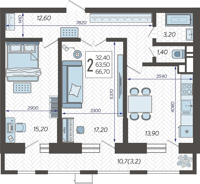 - Общая площадь 66.7 м²
