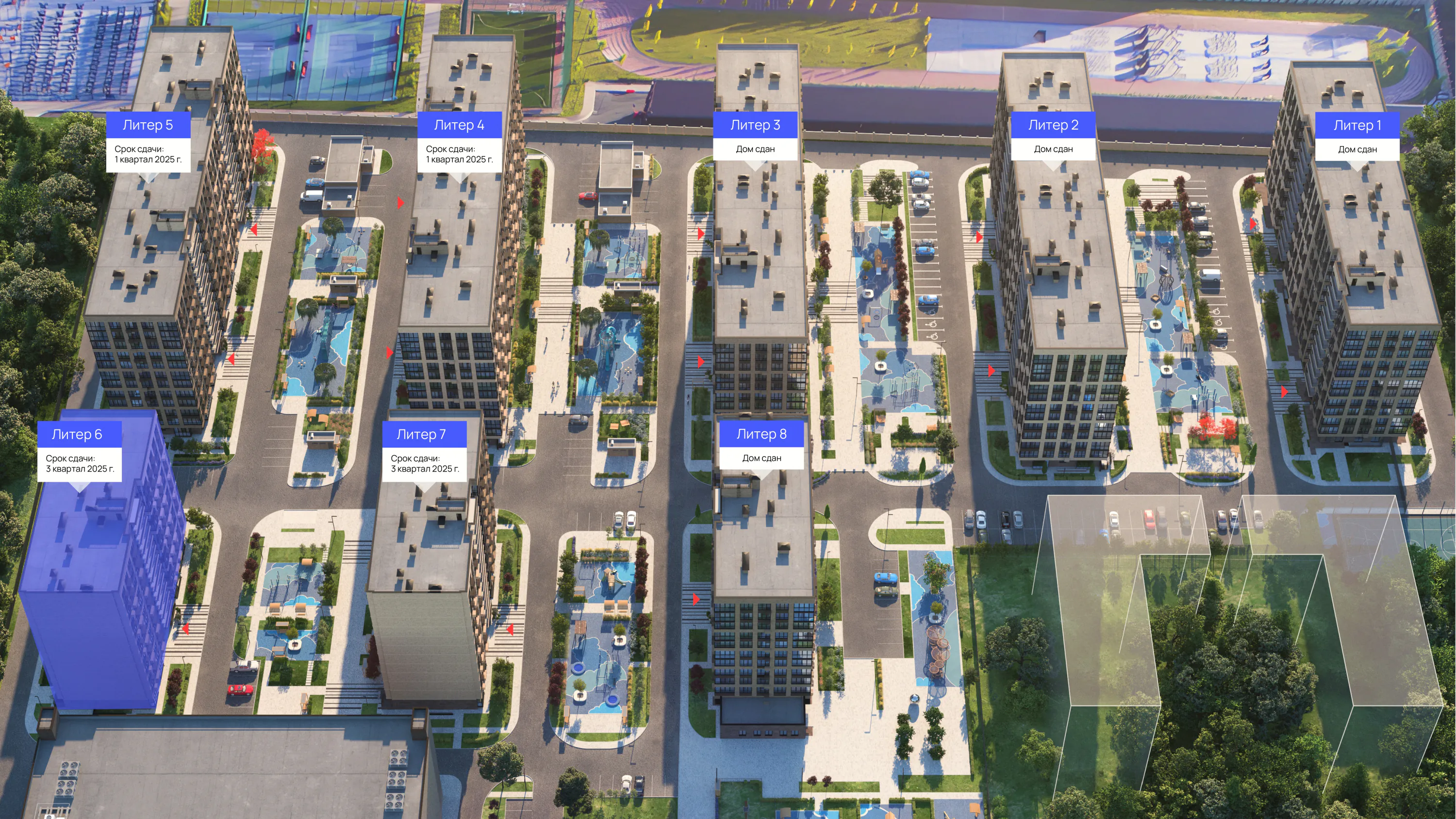 Окрестности комплекса – спокойный тихий район утопающий в зелени, со спокойным ритмом жизни без излишней суеты мегаполиса.