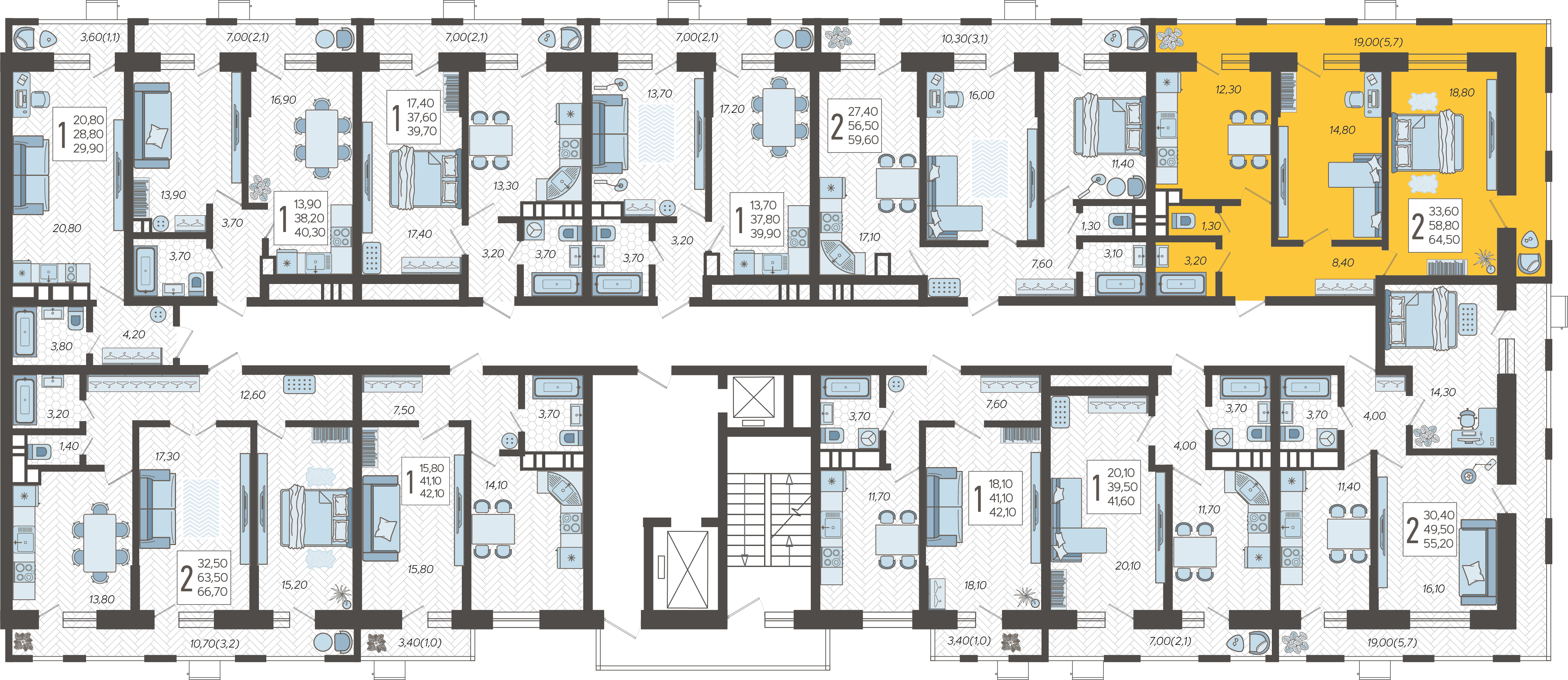 2-комнатная квартира №82, 64.5 м²