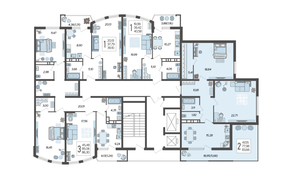 2-комнатная квартира №460, 83.21 м²