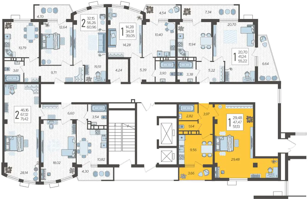 1-комнатные апартаменты №50, 51.13 м²