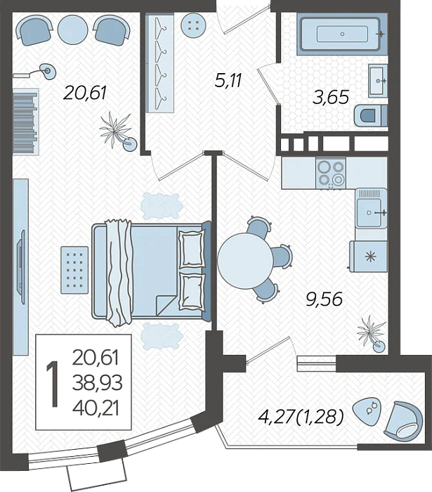 1-комнатная квартира №239, 40.21 м²