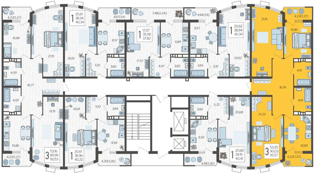 3-комнатная квартира №125, 92.57 м²