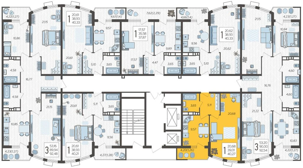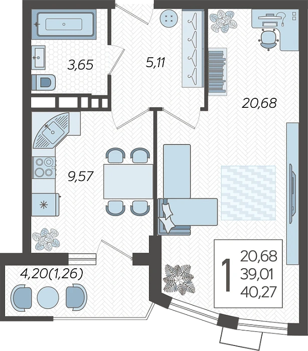 1-комнатная квартира №259, 40.27 м²