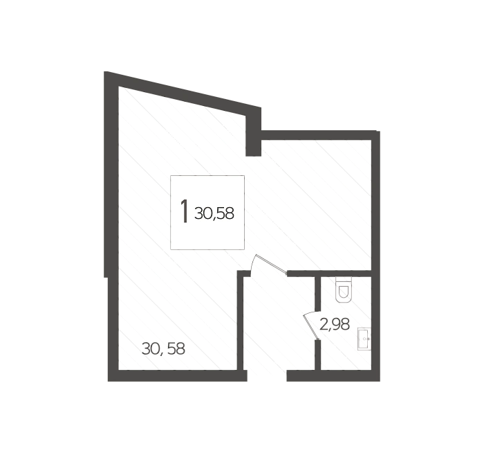 - Общая площадь 30.58 м²