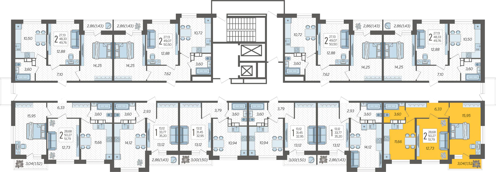 2-комнатная квартира №123, 51.79 м²