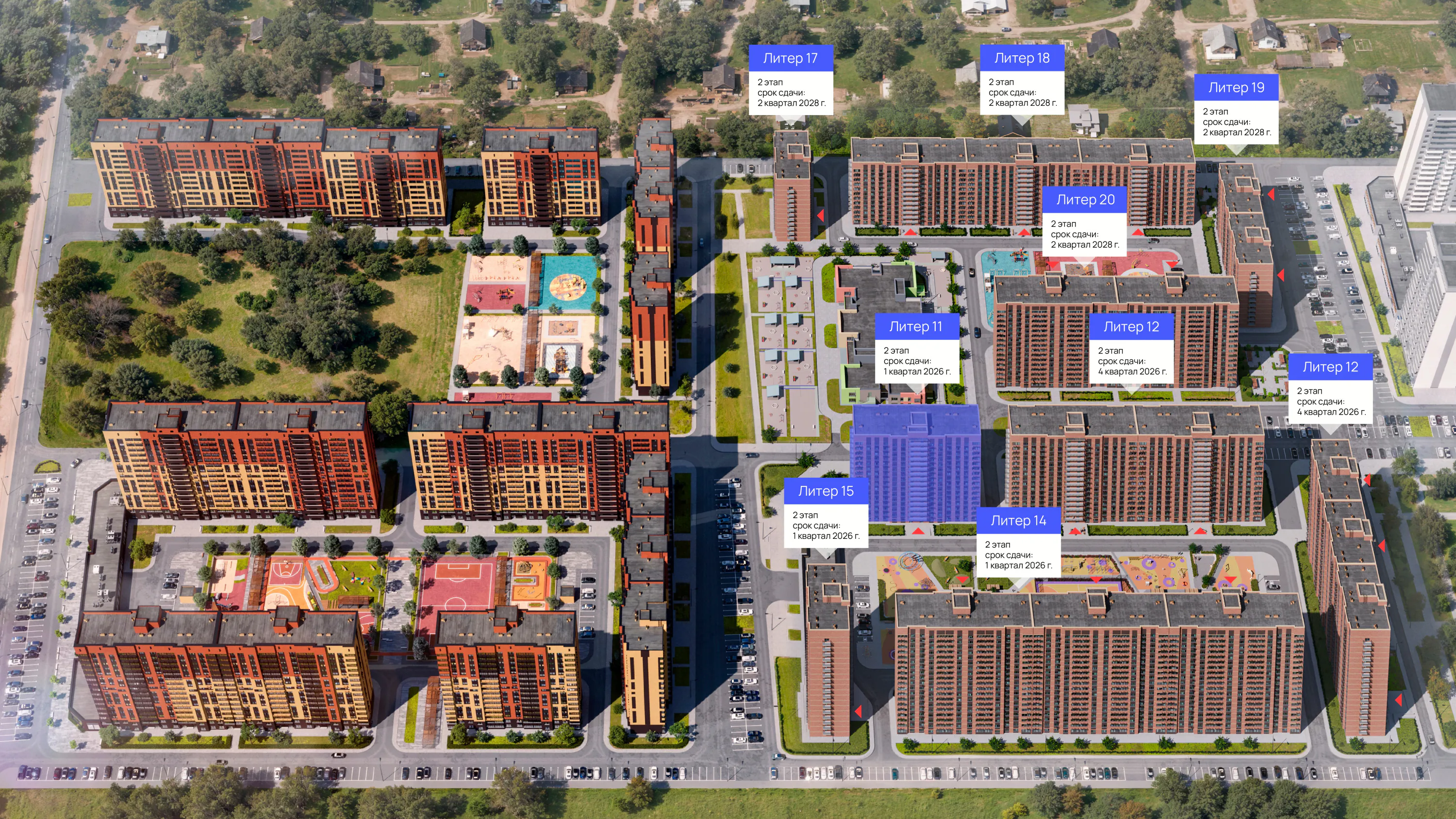 Этот комплекс такой же теплый и сочный, наполненный светом и зеленью как эта летняя ягода. Ягодную тему поддержат фасадные решения, оформление мест общего пользования и, конечно, придомовая территория.