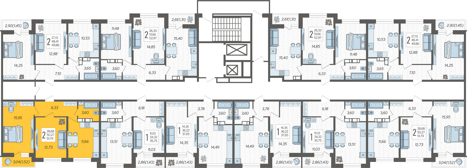 2-комнатная квартира №288, 51.79 м²