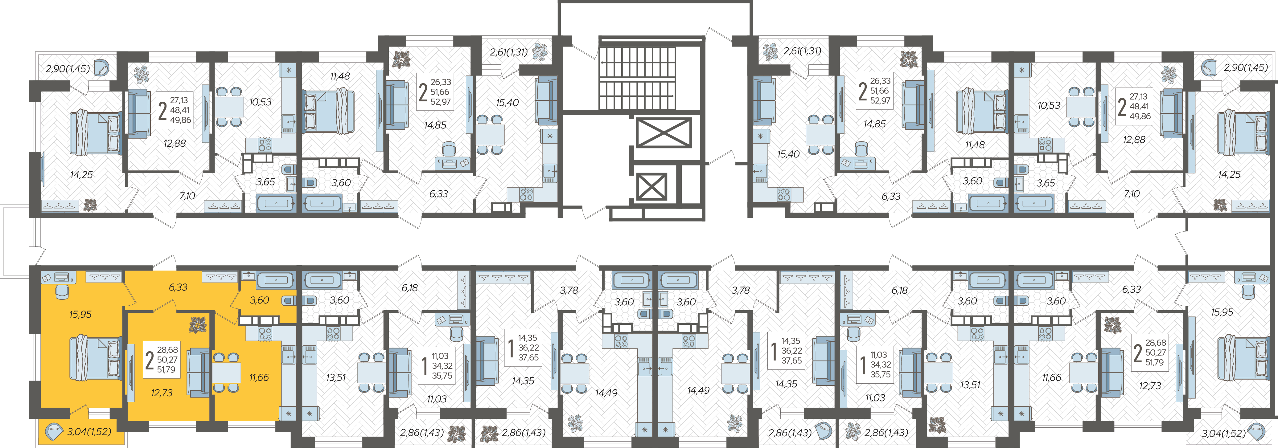 2-комнатная квартира №518, 51.79 м²