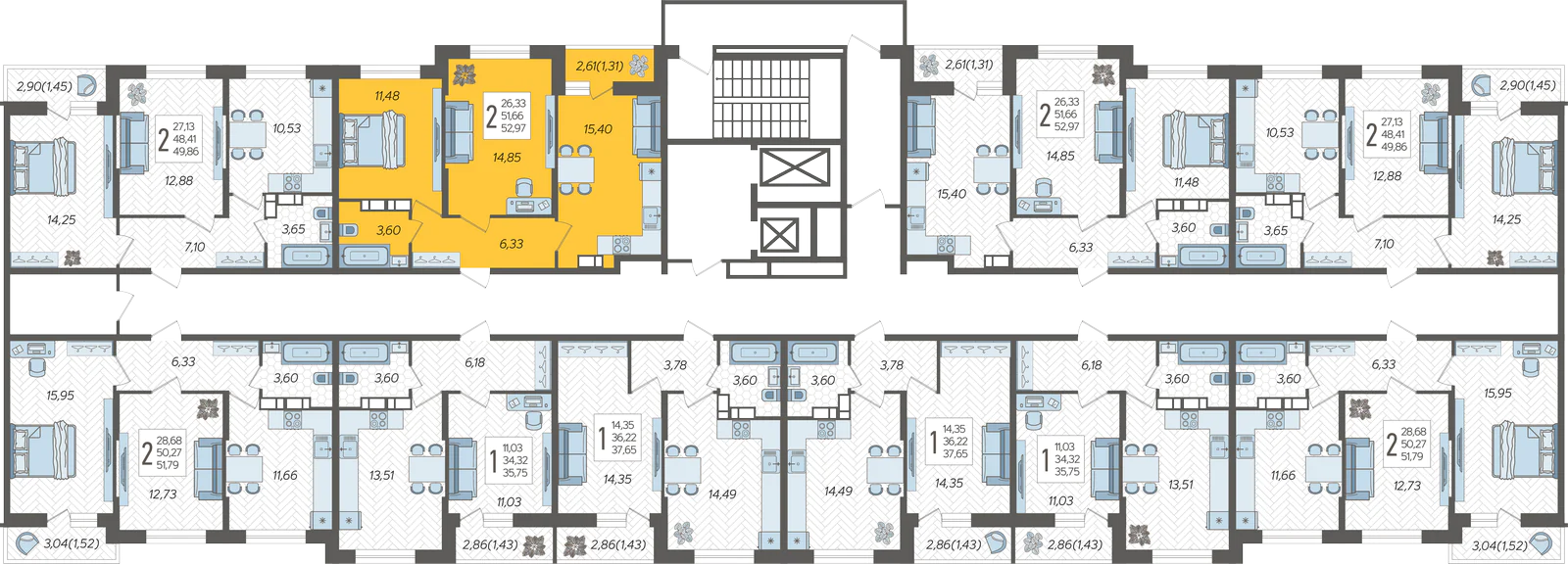 2-комнатная квартира №350, 52.97 м²