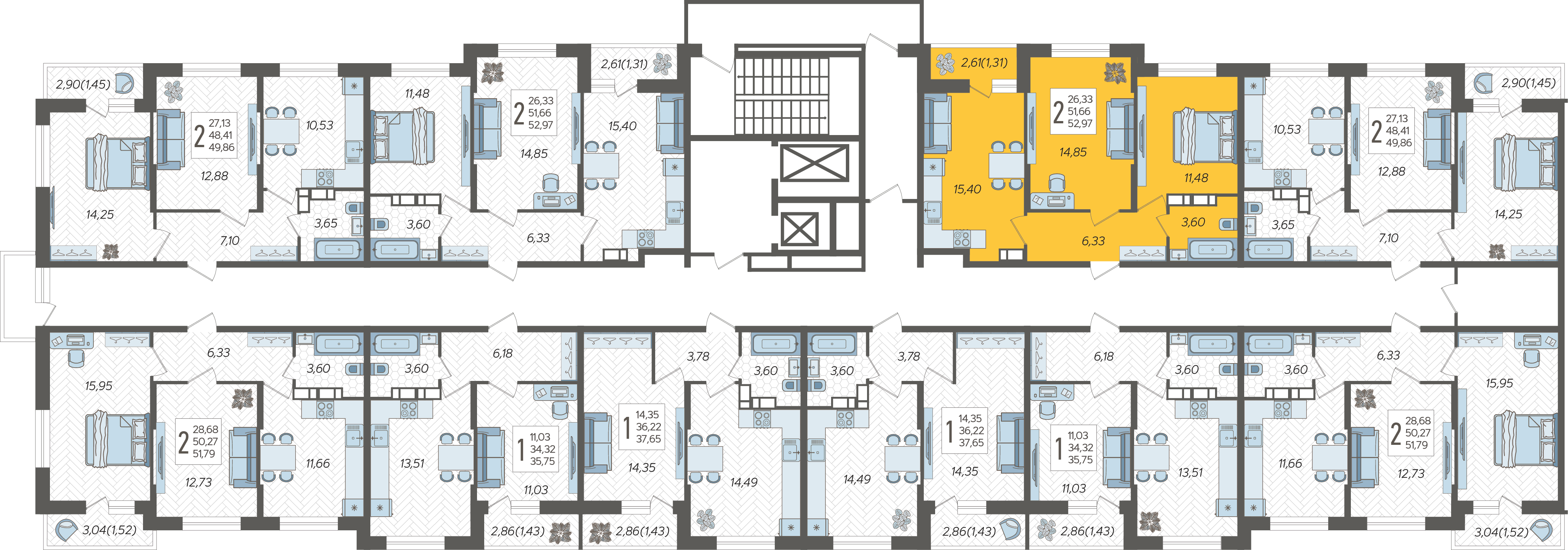 2-комнатная квартира №541, 52.97 м²