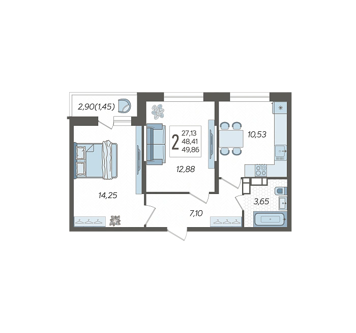 2-комнатная квартира №179, 49.86 м²
