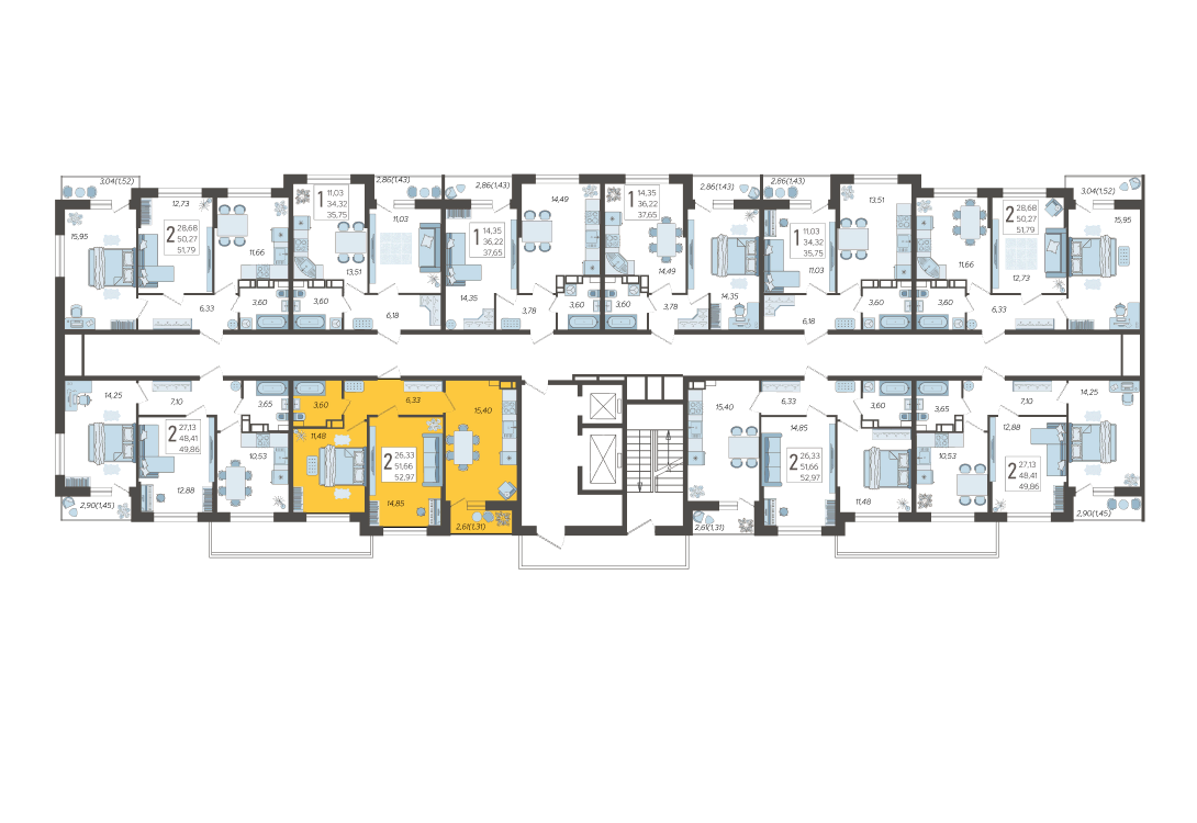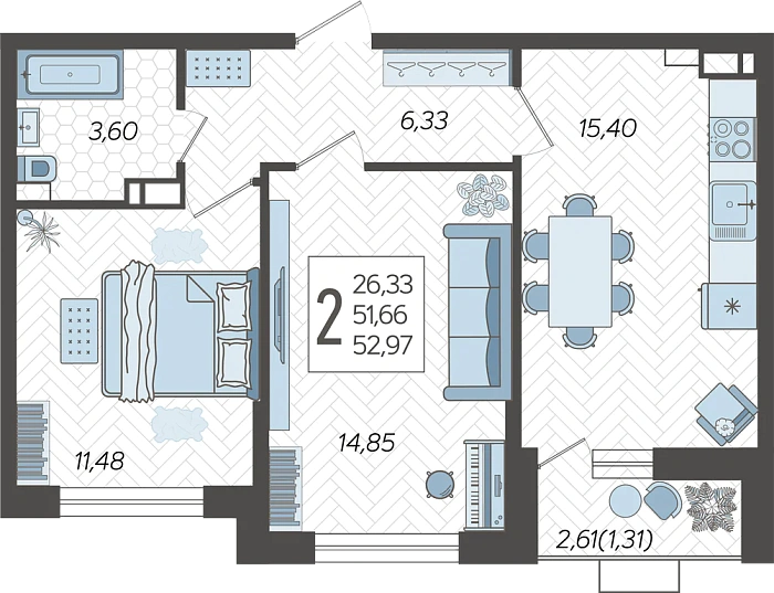 2-комнатная квартира №331, 52.97 м²