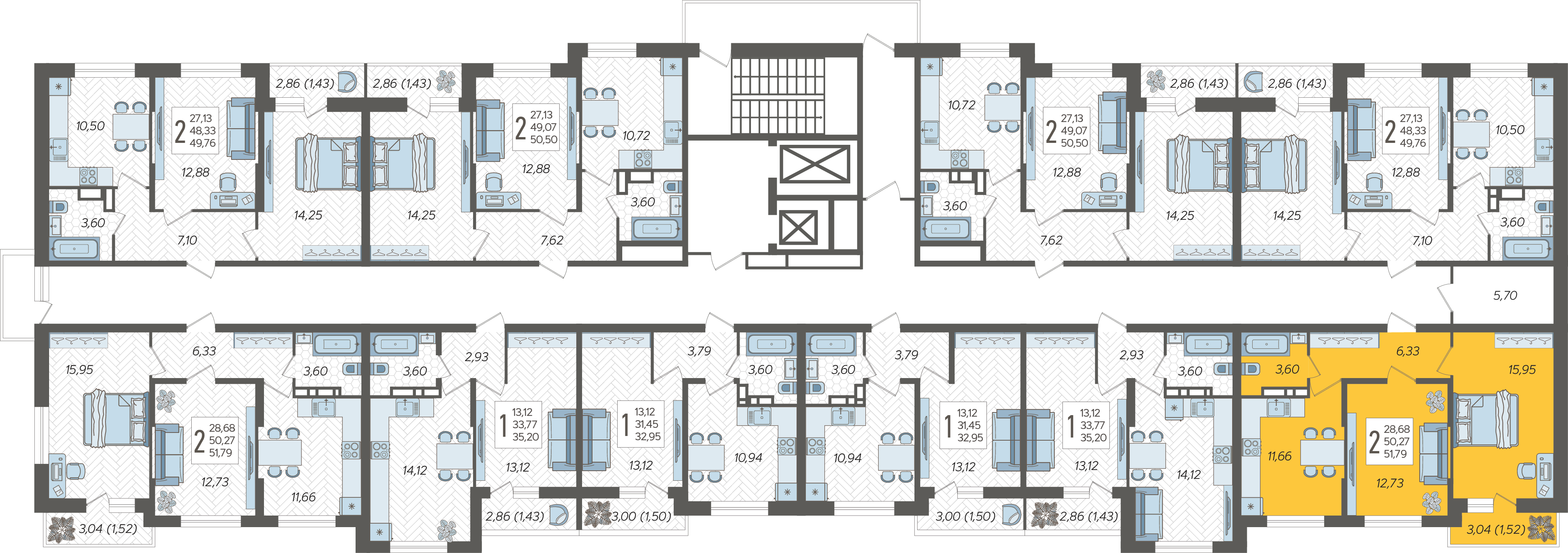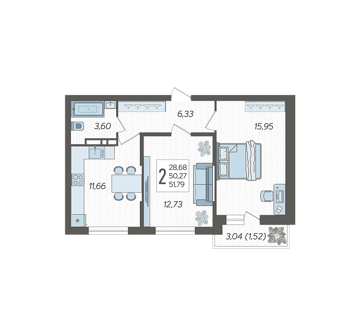 2-комнатная квартира №233, 51.79 м²