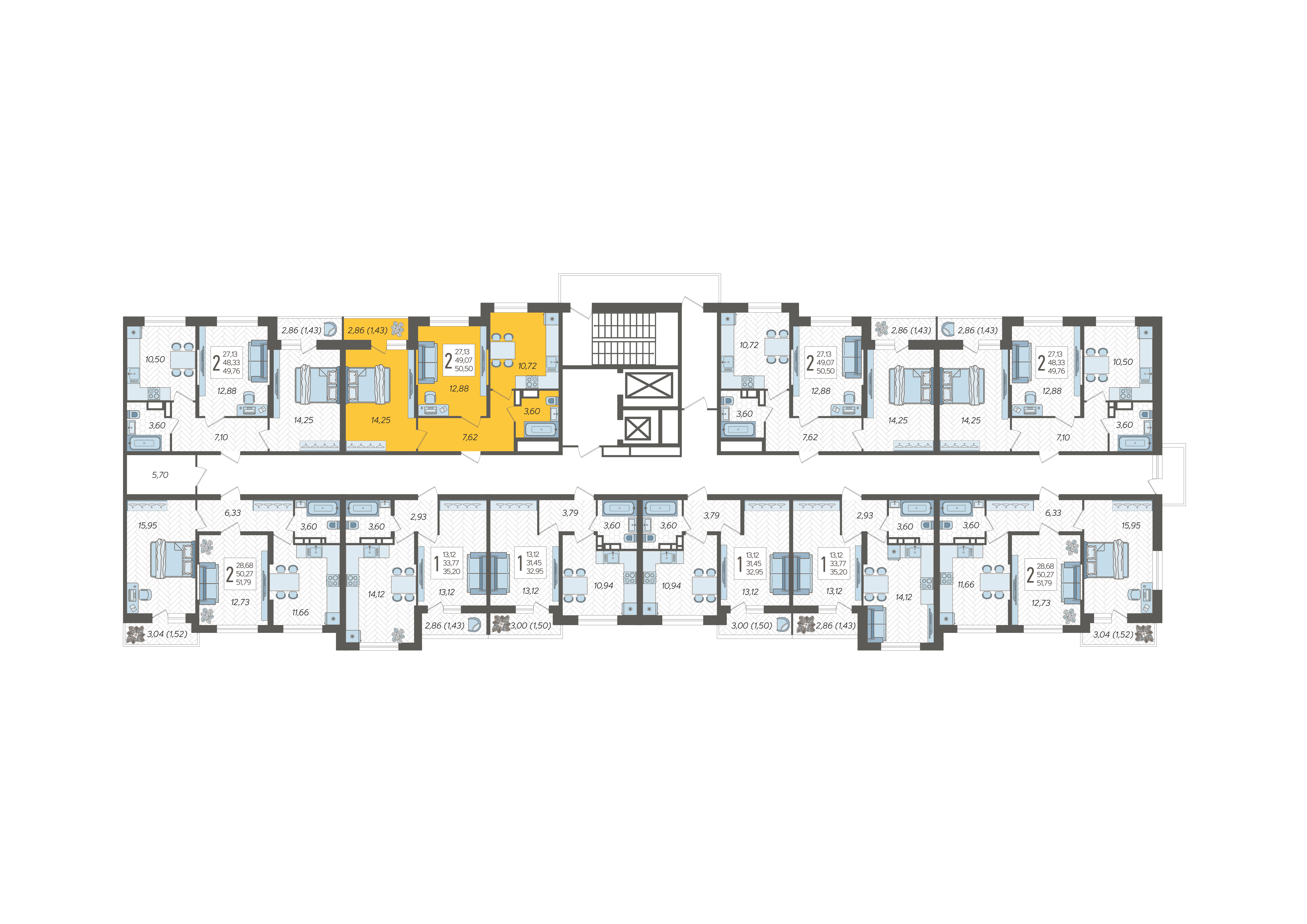 2-комнатная квартира №120, 50.5 м²
