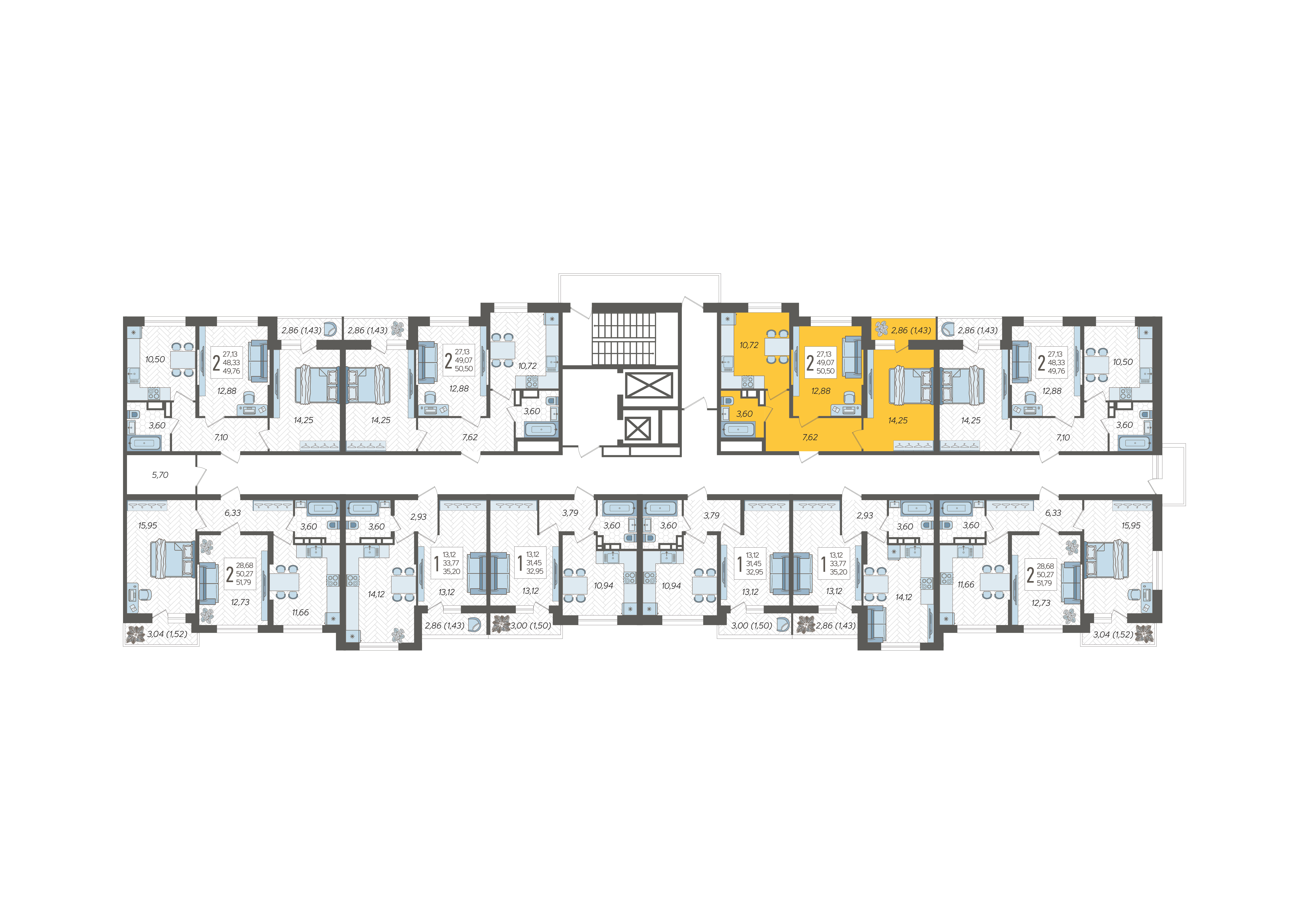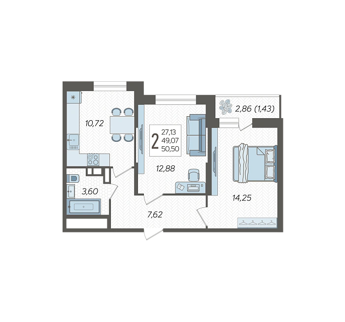 2-комнатная квартира №131, 50.5 м²