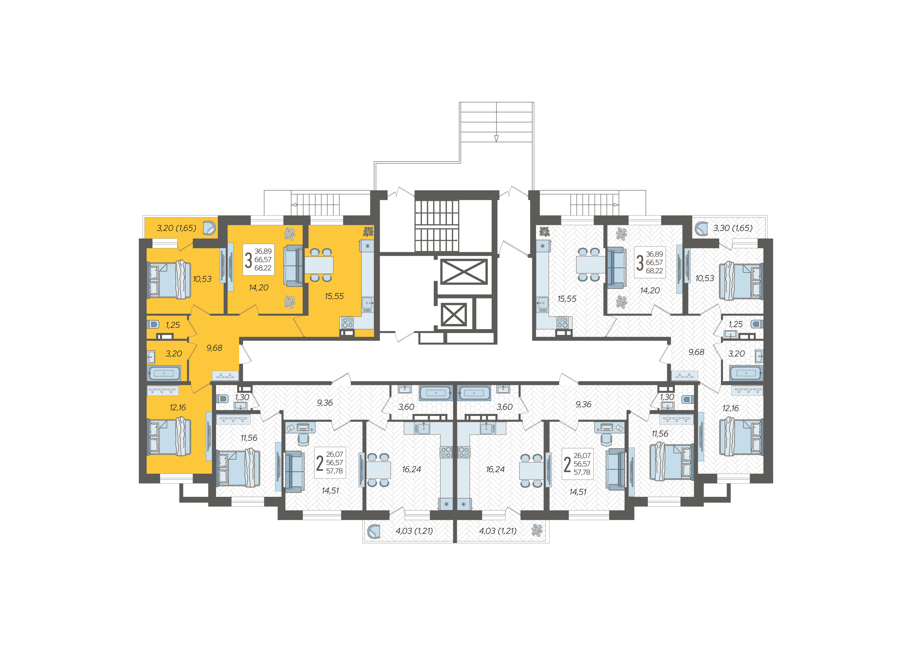 - Общая площадь 68.22 м²