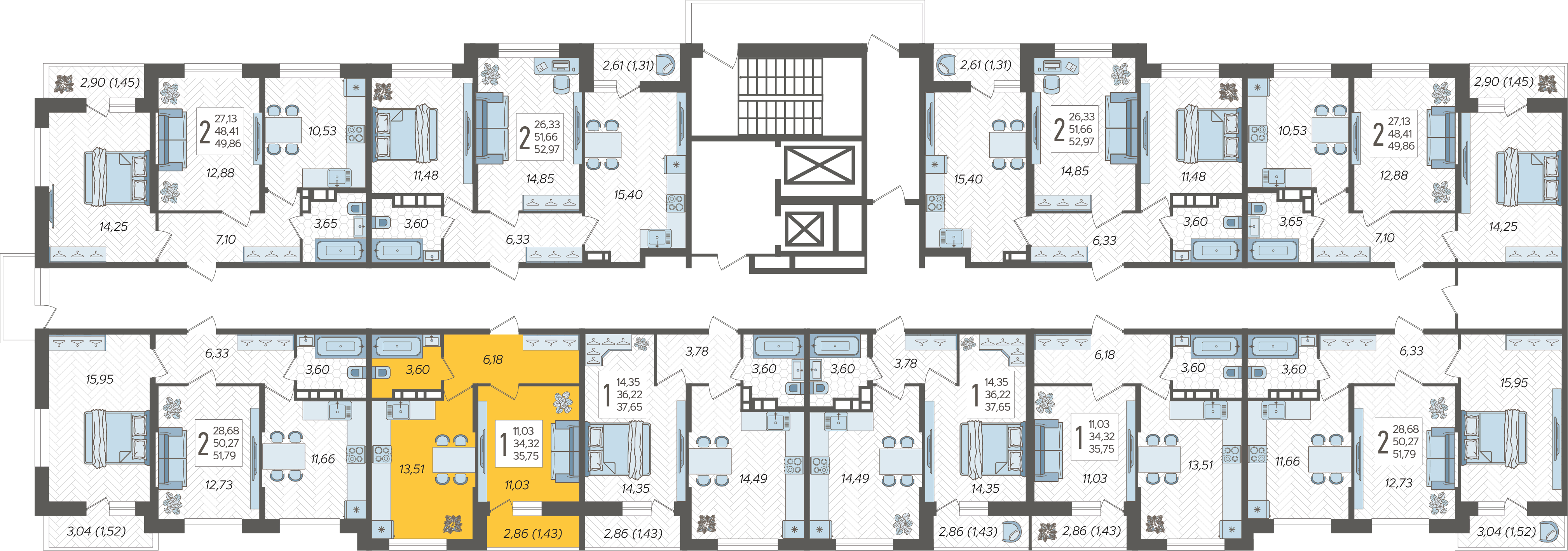 1-комнатная квартира №127, 35.75 м²