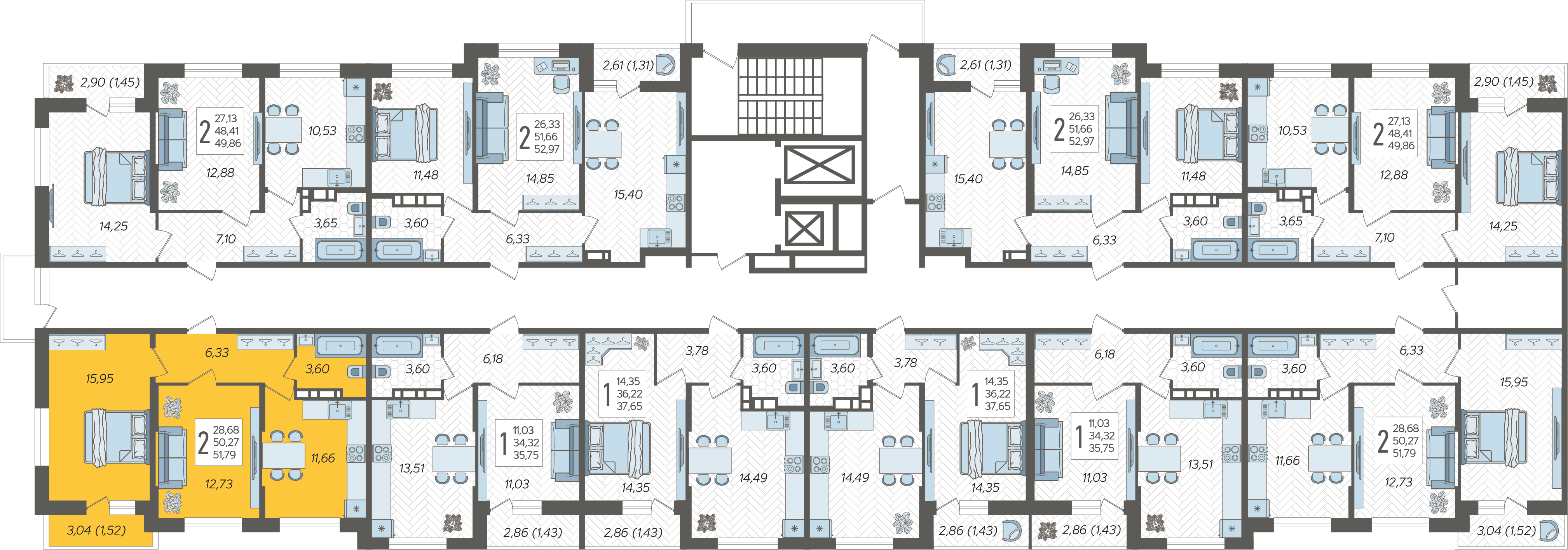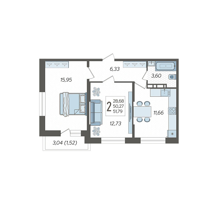 2-комнатная квартира №258, 51.79 м²