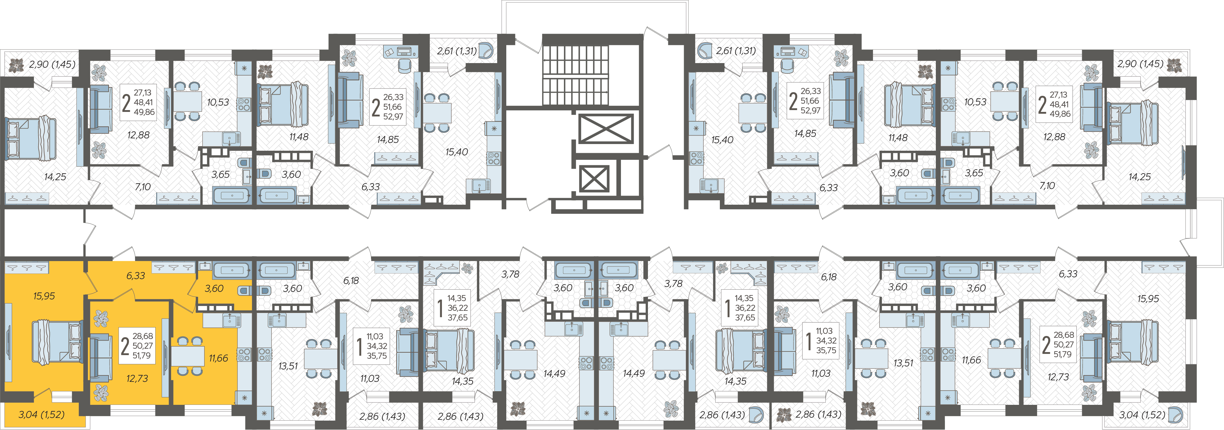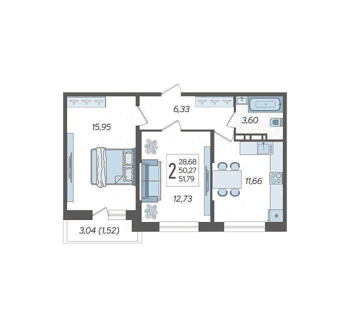 2-комнатная квартира №68, 51.79 м²