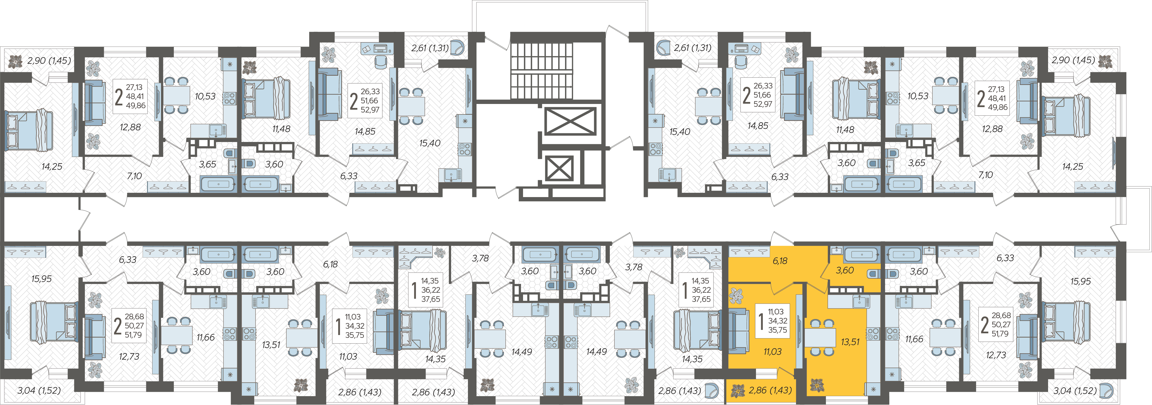 1-комнатная квартира №114, 35.75 м²