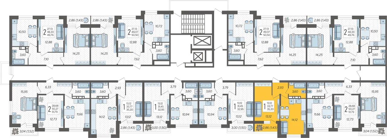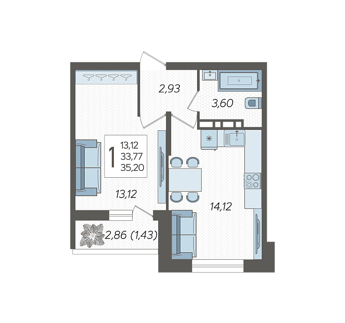 1-комнатная квартира №164, 35.2 м²