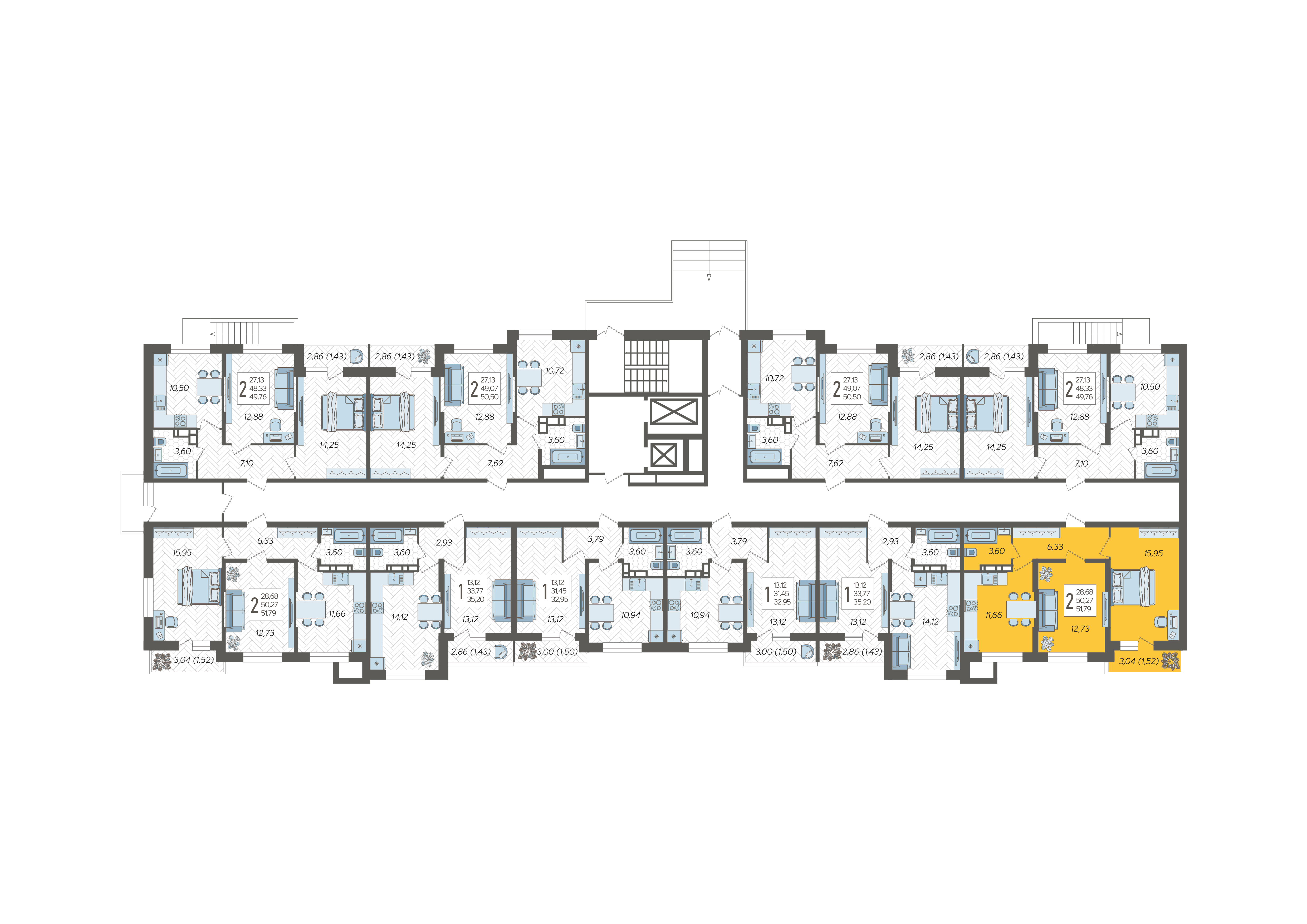2-комнатная квартира №3, 51.79 м²