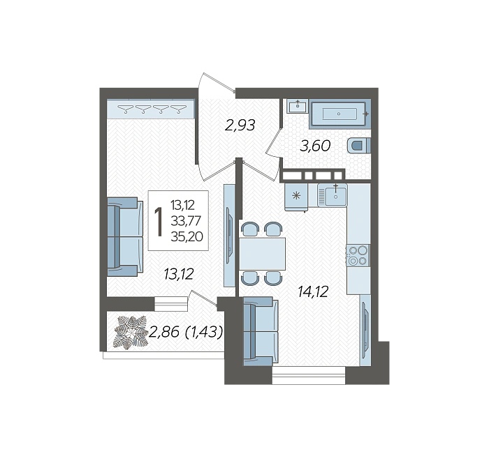 1-комнатная квартира №84, 35.2 м²