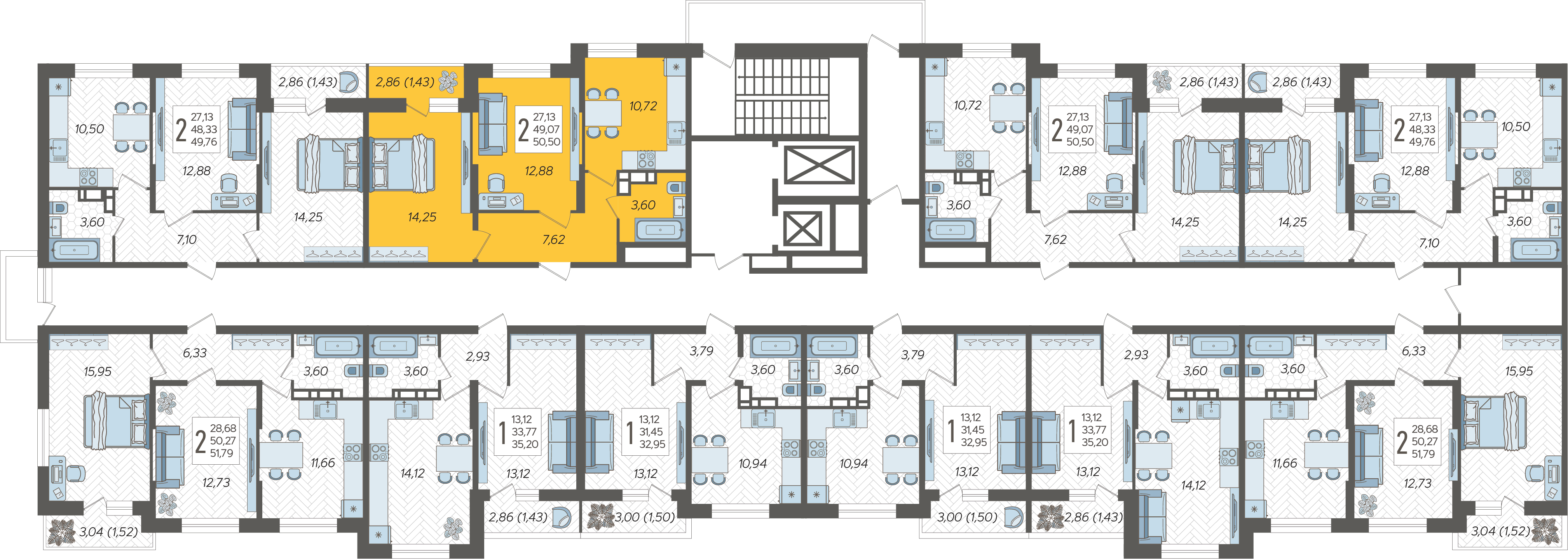 2-комнатная квартира №260, 50.5 м²