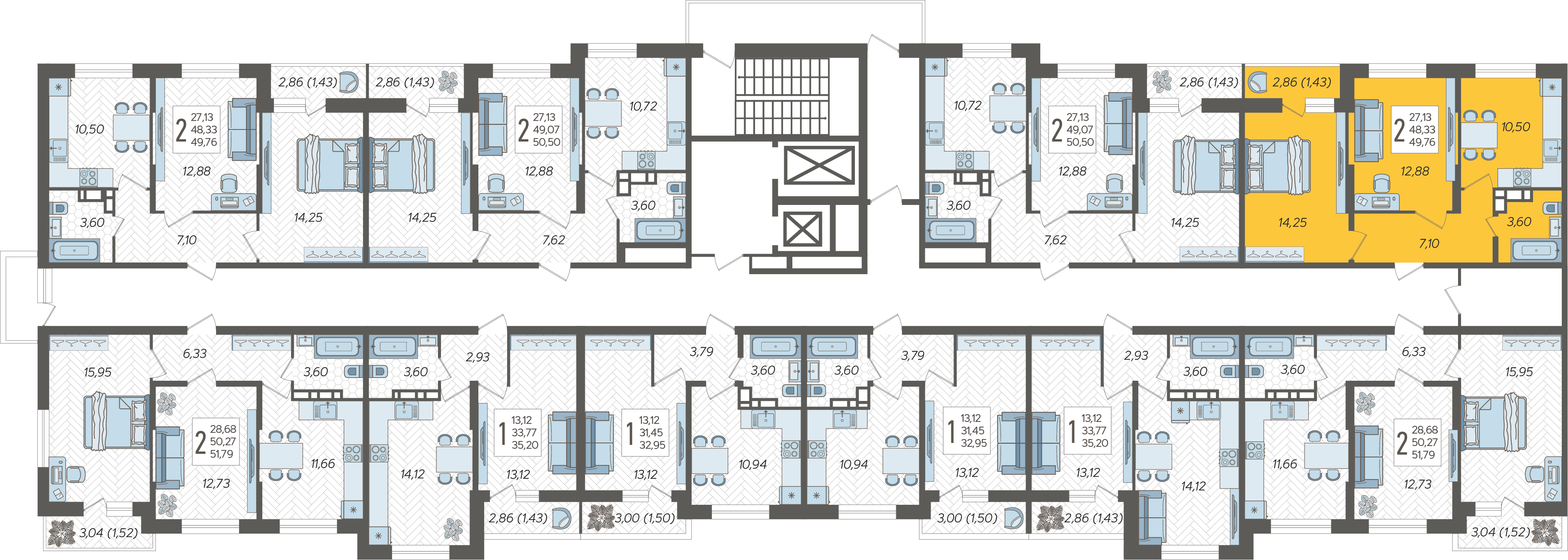 2-комнатная квартира №282, 49.76 м²