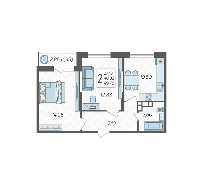 - Общая площадь 49.76 м²