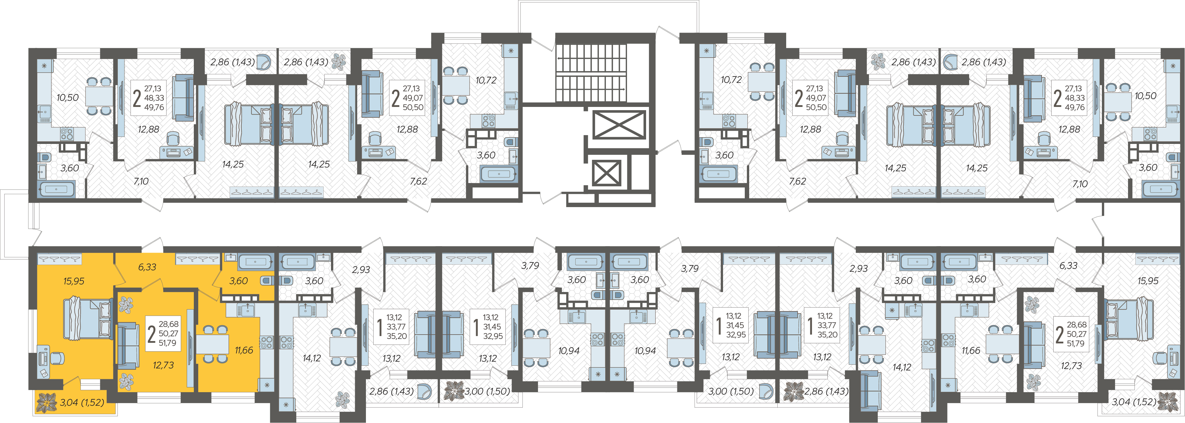 2-комнатная квартира №298, 51.79 м²