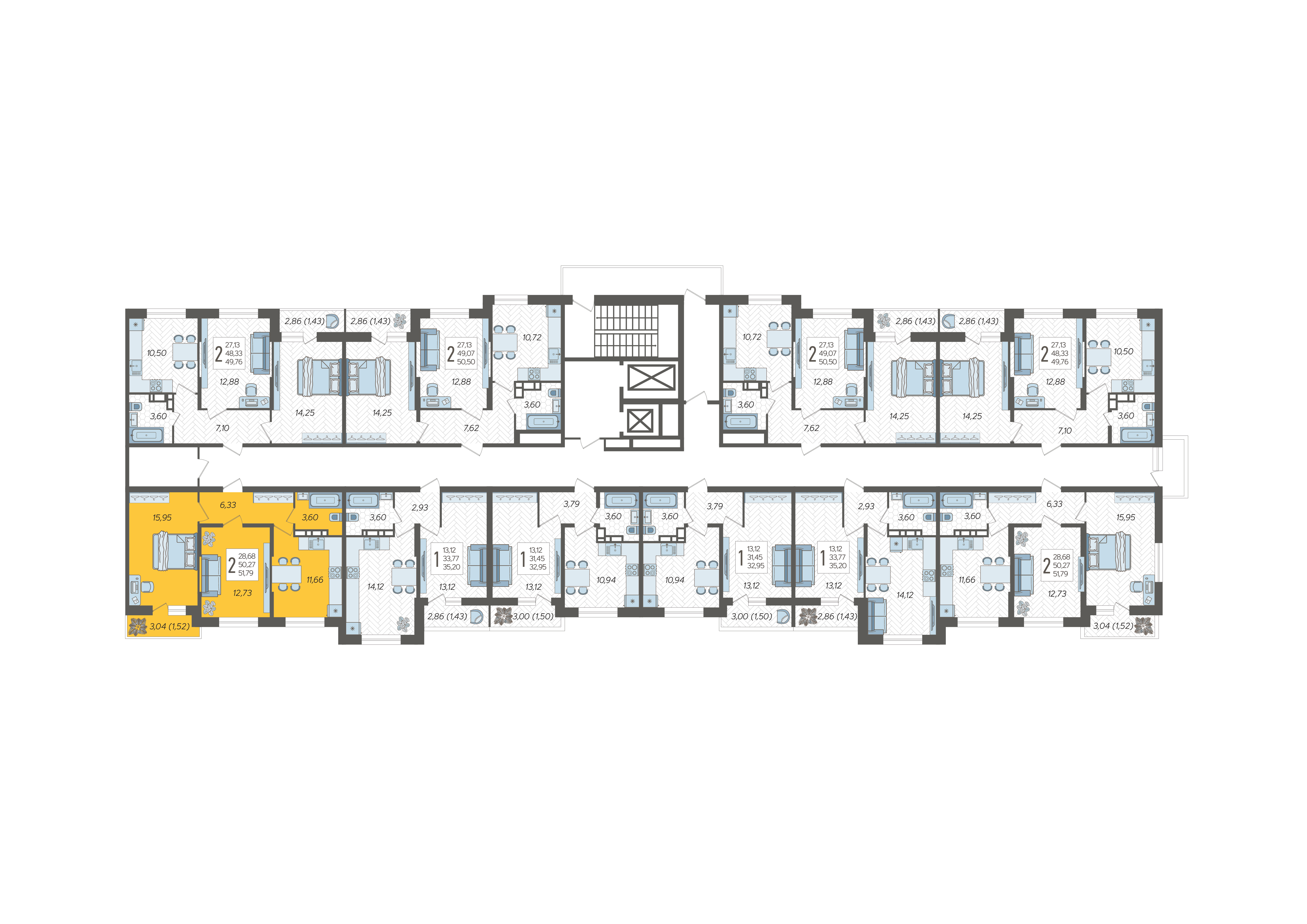2-комнатная квартира №138, 51.79 м²