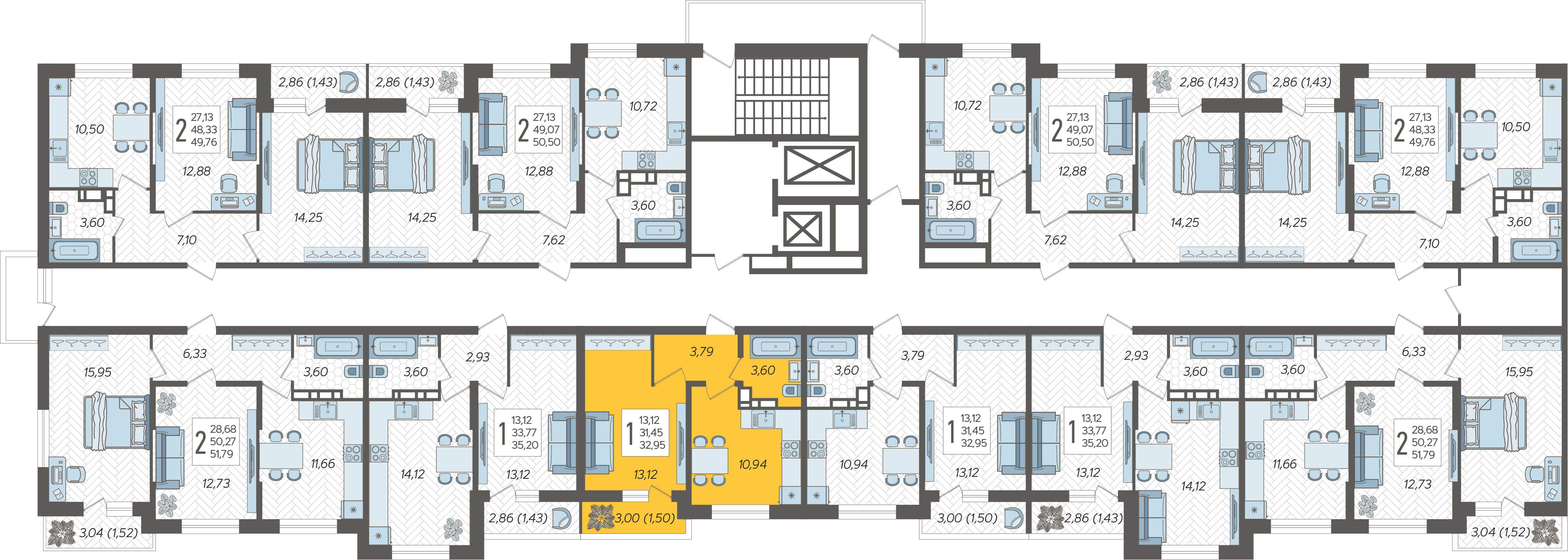 1-комнатная квартира №306, 32.95 м²