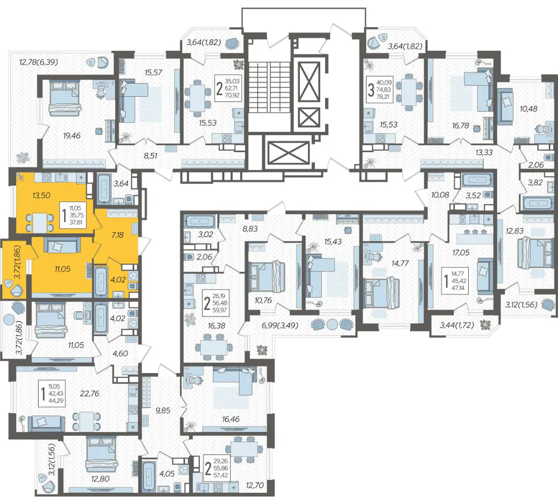1-комнатная квартира №811, 37.61 м²