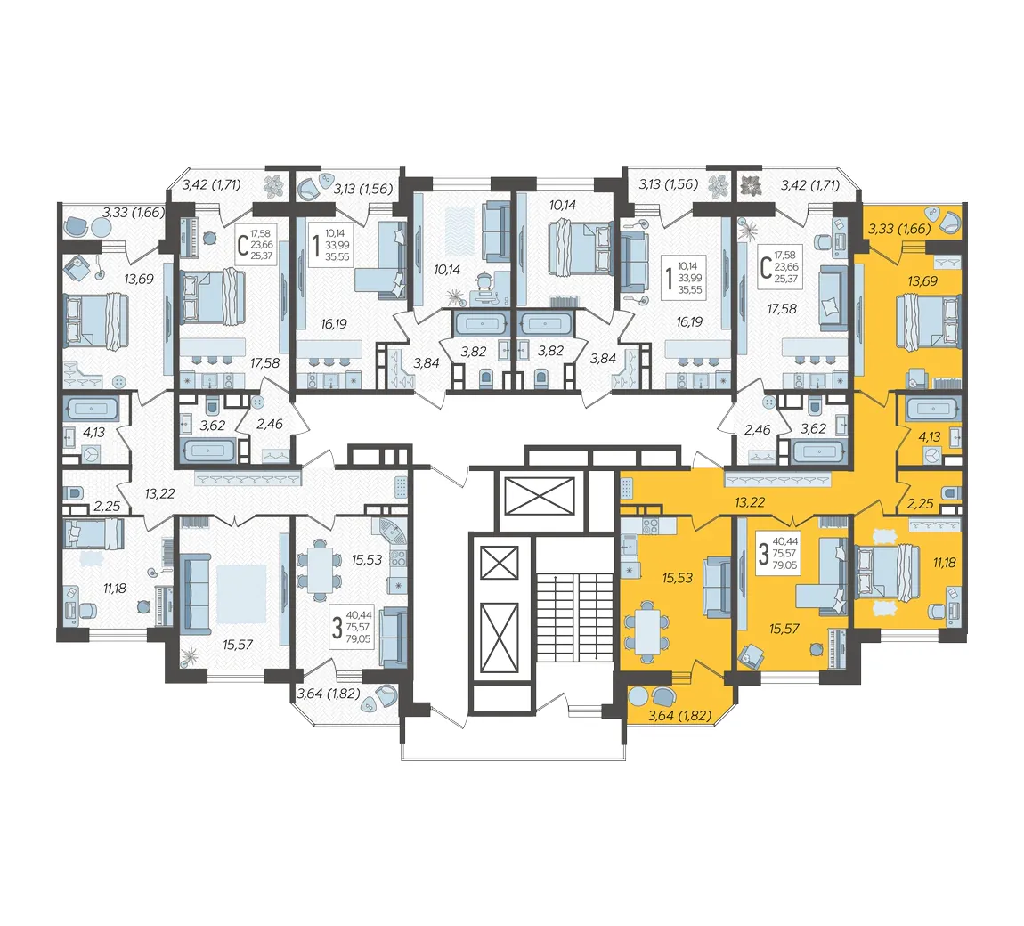 3-комнатная квартира №249, 79.05 м²