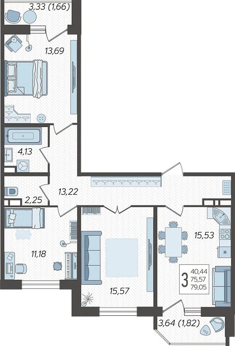 3-комнатная квартира №1750, 79.05 м²