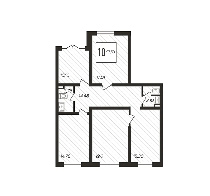 - Общая площадь 97.53 м²