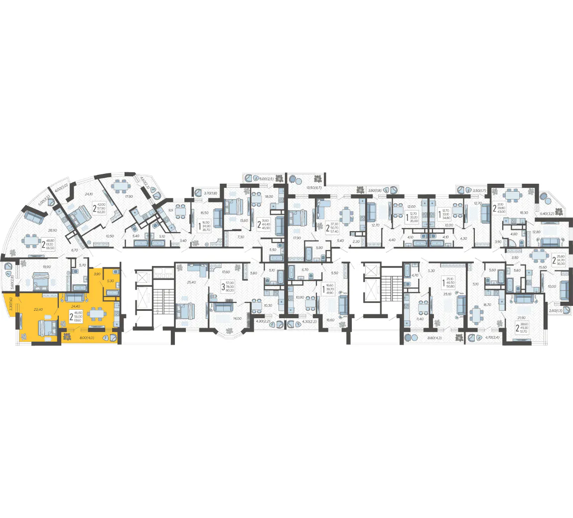 2-комнатная квартира №73, 62 м²