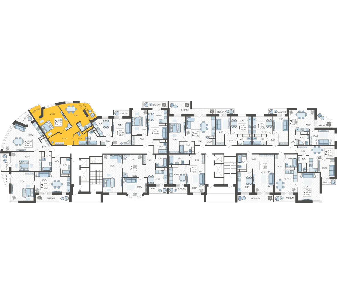 Дома комплекса оснащены подъездами удобными в том числе и для маломобильных граждан, скоростными лифтами, оригинальным интерьером.